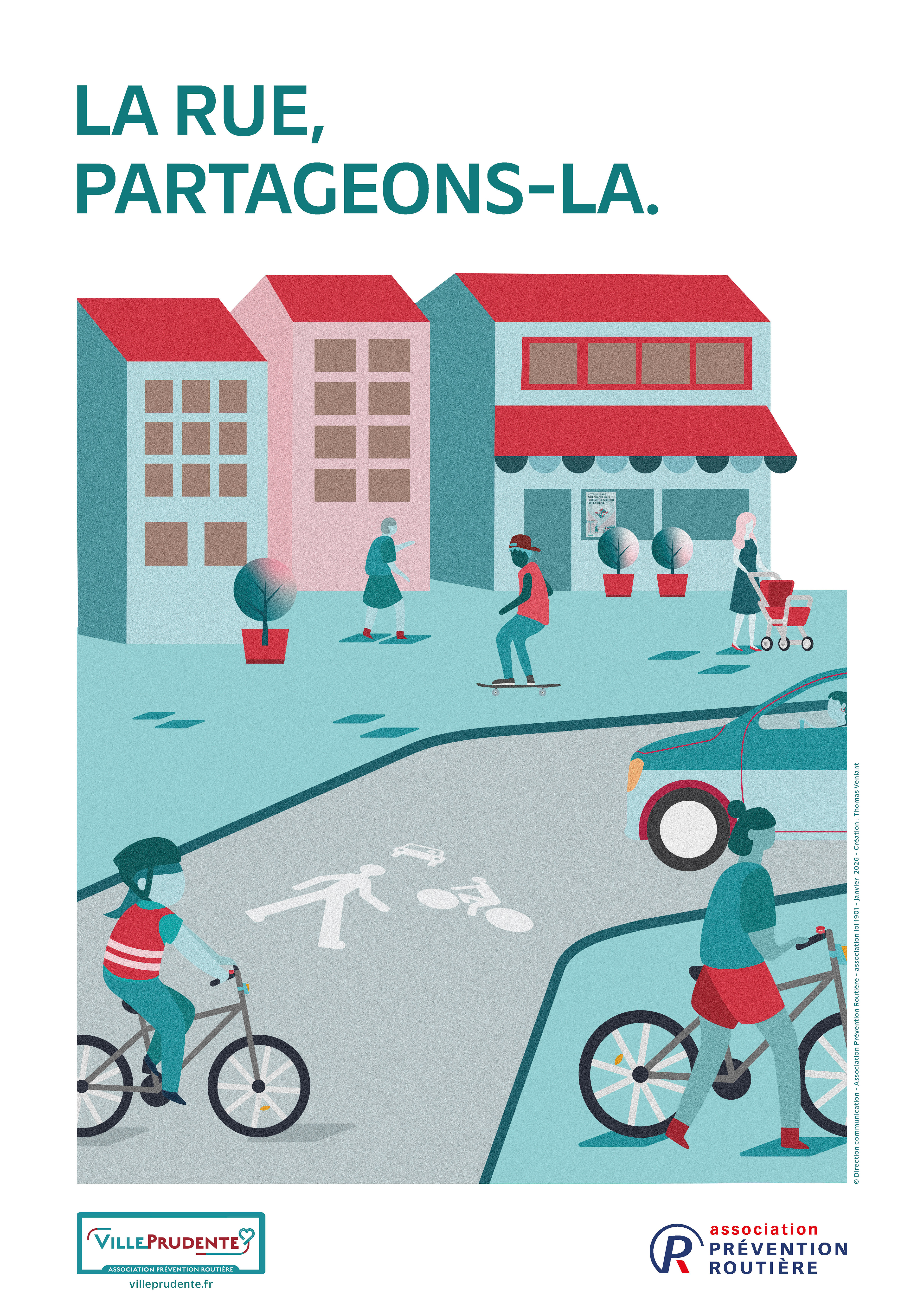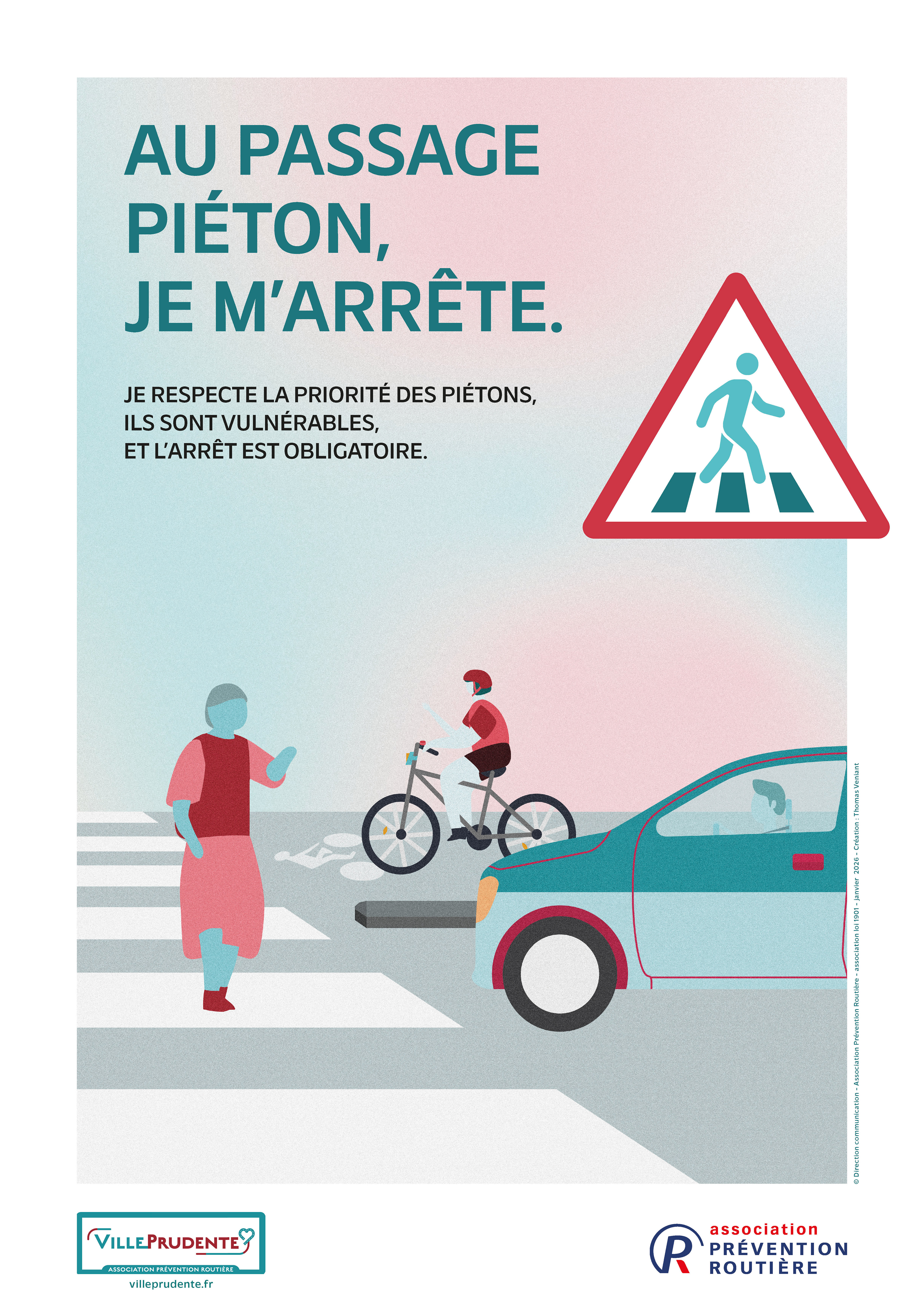 L’association Prévention Routière m’a confié la création d’un kit de 10 affiches pour son label Ville Prudente, destiné aux communes engagées dans la sécurité routière. L’objectif : valoriser leur engagement, expliquer les aménagements apaisés (zones 30, zones de rencontre, abords d’écoles) et sensibiliser les usagers à un partage respectueux de l’espace public.
