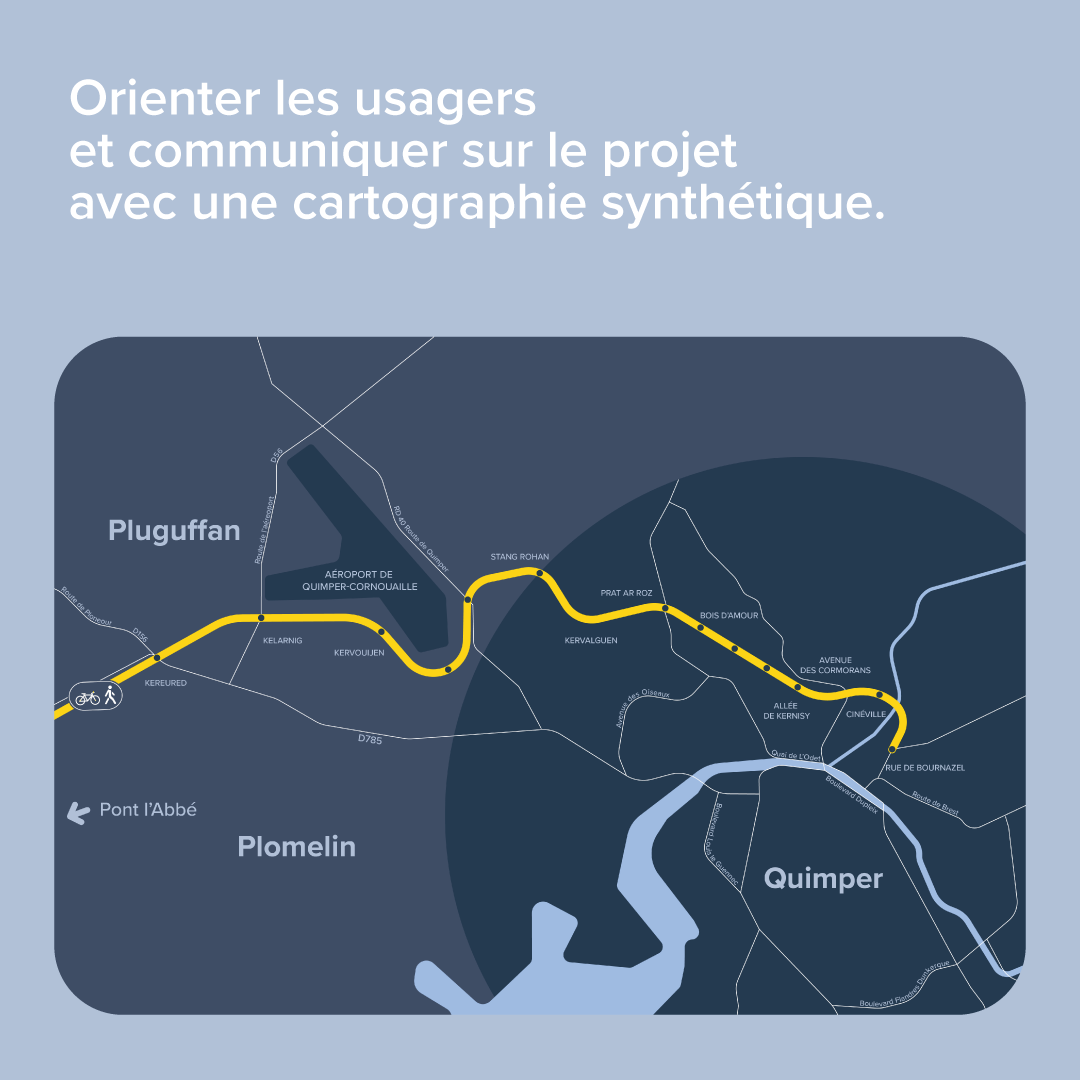 La voie verte reliant Quimper à Pluguffan constitue un atout majeur pour les mobilités actives et la valorisation du territoire. Toutefois, l’absence de signalétique spécifique limite aujourd’hui son appropriation et son attractivité.