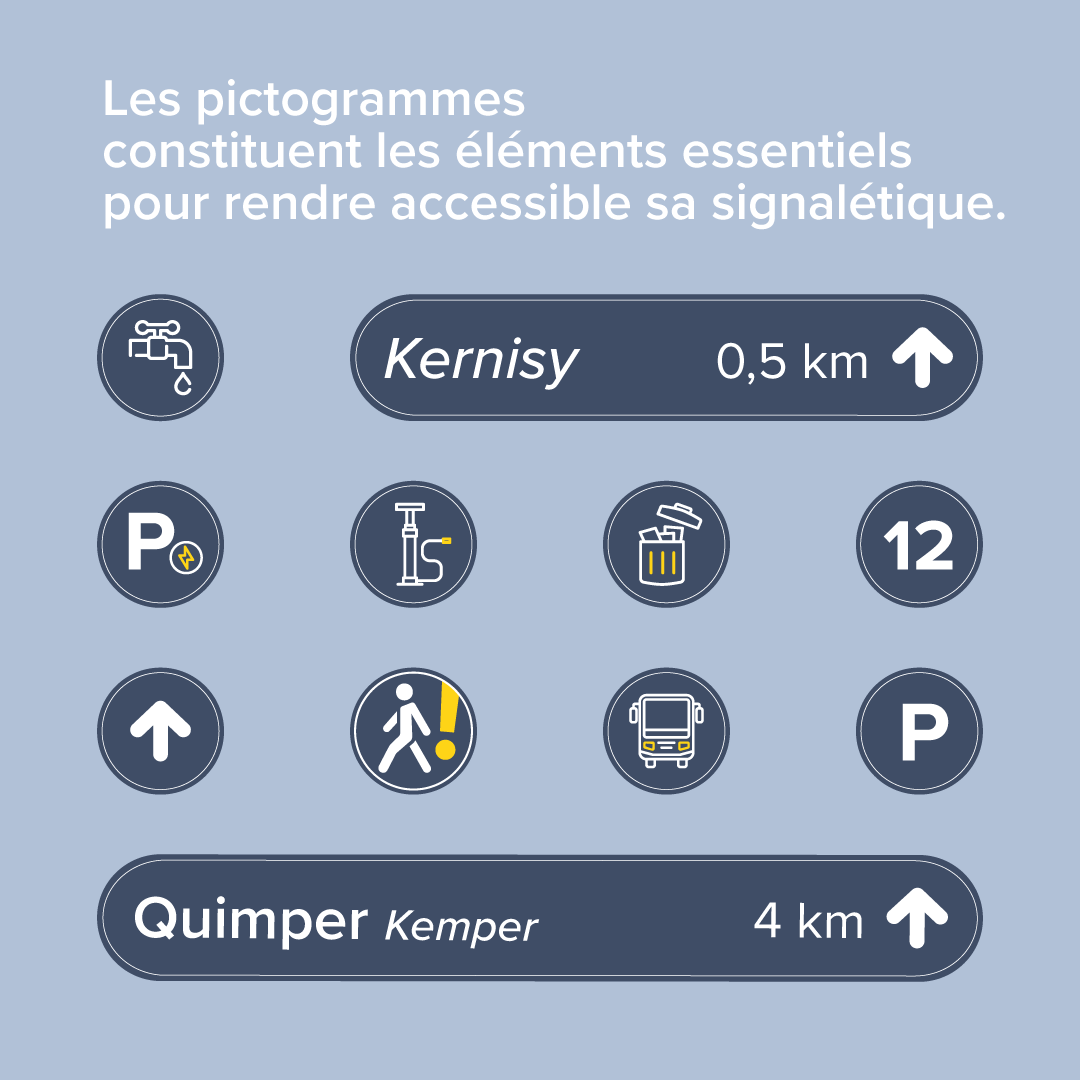 👉 Un exemple concret : des panneaux directionnels intégrant à la fois distances, temps estimés et pictogrammes universels (piéton, vélo, services), afin d’offrir aux usagers une expérience claire, sécurisée et valorisante.
